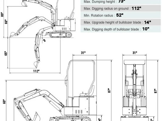 KYMRON® YH14 Mini Excavator (w/ Side Swing Boom)