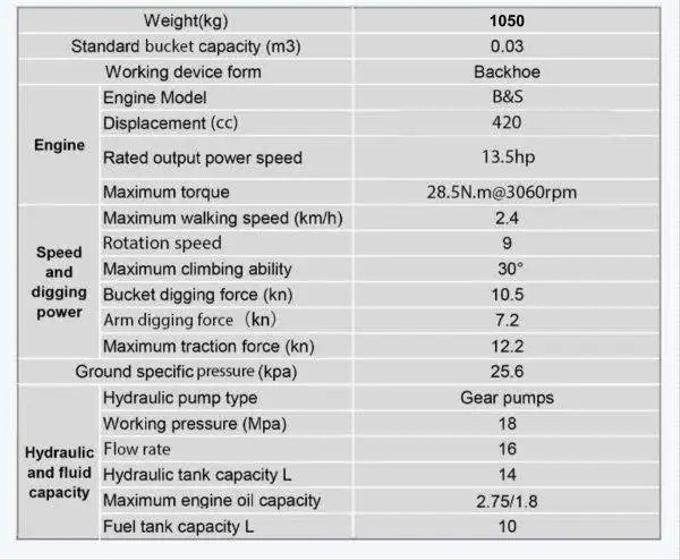 | Bucket Capacity | 0.025 m³ (0.88 ft³) |