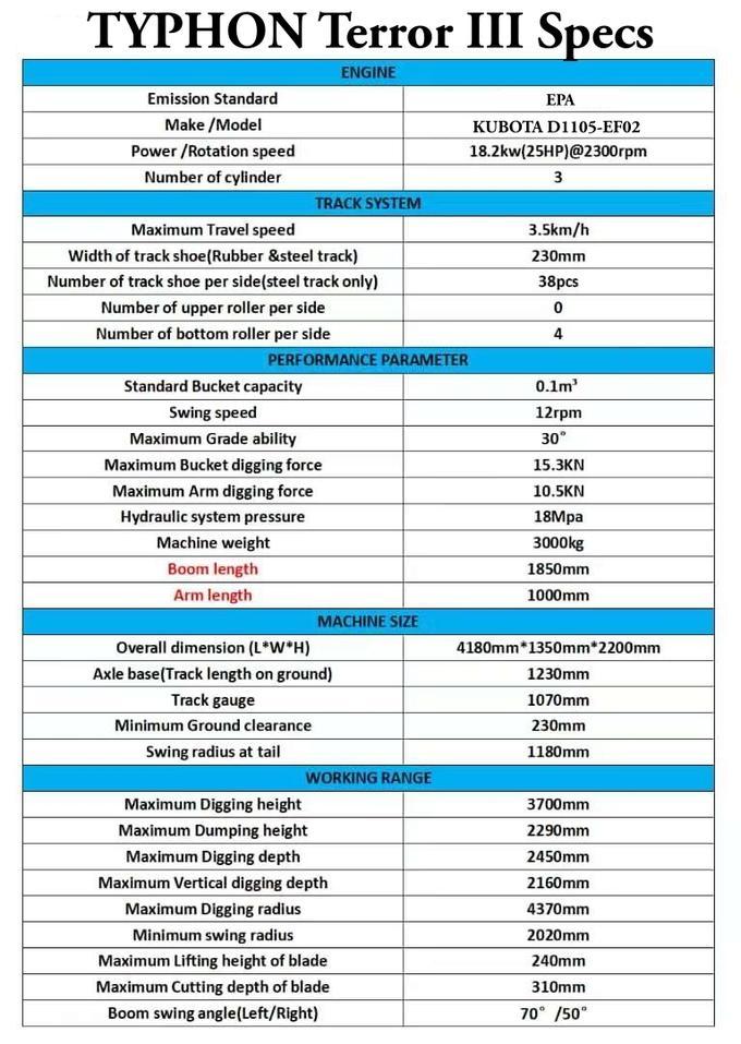 - Compact and Durable: Despite its size, the Typhon Terror 3-Ton Mini Excavator is easy to transport and maneuver, with the durability to handle tough job sites.