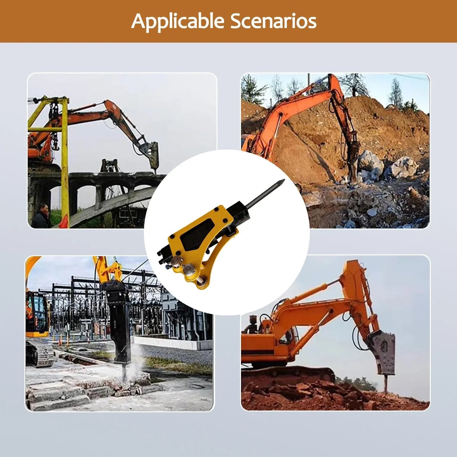 Hydraulic Power: Uses the excavator’s hydraulic system to generate exceptional impact force for breaking through even the toughest materials with ease.